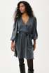 Griselle to miękka, otulająca sukienka o kopertowym kroju, który pięknie podkreśla talię i dopasowuje się do sylwetki. Delikatnie połyskujący materiał dodaje jej wyrafinowania, a bufiaste rękawy dodają sylwetce lekkości i subtelnej elegancji, dzięki czemu sukienka sprawdzi się zarówno na rodzinnej kolacji, spotkaniu świątecznym, jak i na co dzień — gdy chcesz wyglądać wyjątkowo bez wysiłku.
