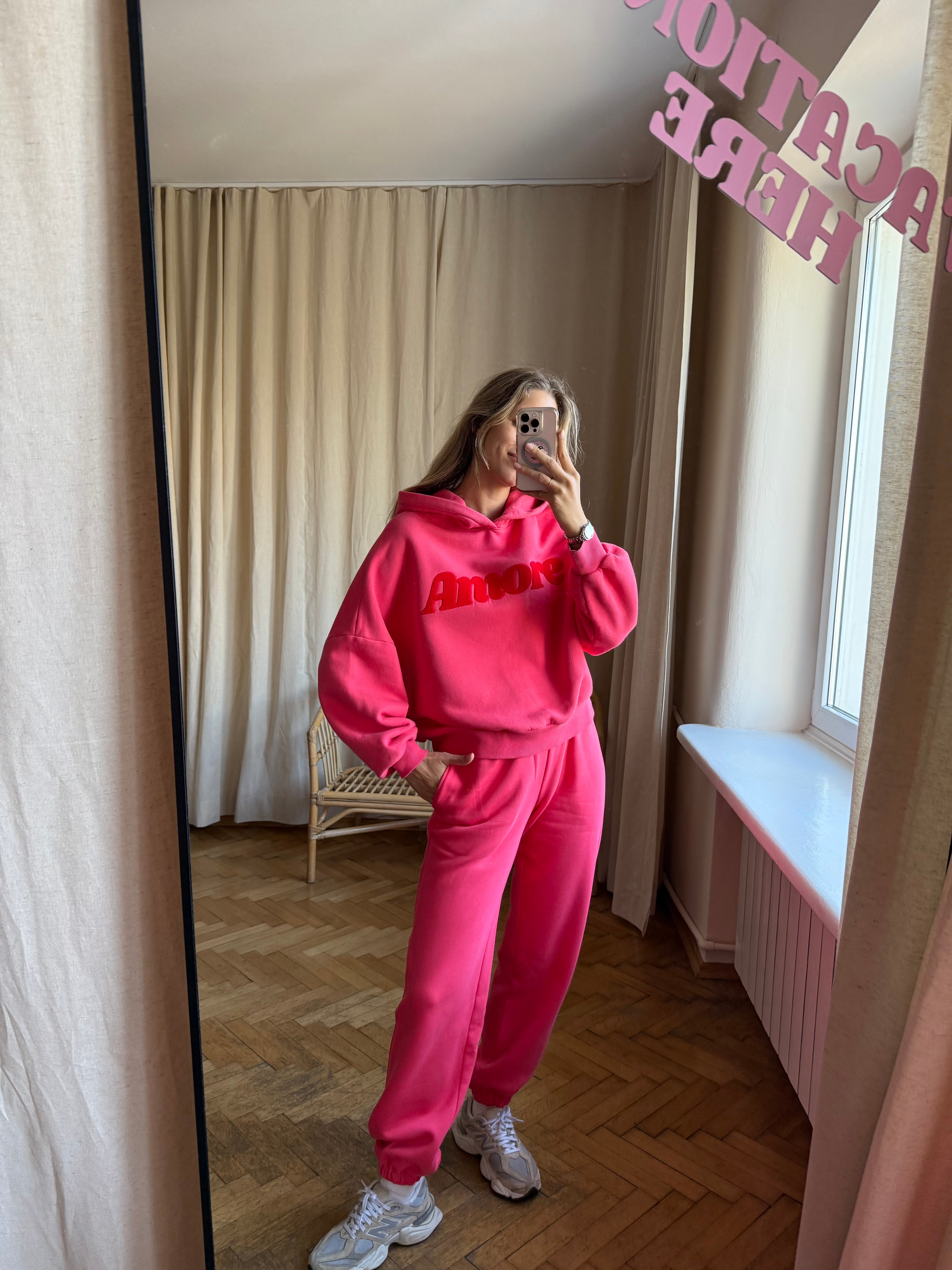 Są dni, które wymagają specjalnej oprawy. Nasz zestaw Amore to miękkość, którą chcesz czuć na sobie przez cały dzień. Połączyliśmy nasze najmiększe bestsellery w jeden niezawodny zestaw. Energetyczna czerwień bluzy Amore, idealnie skrojone Spodnie Amore i Skarpetki Ciao Bordo z gwiazdką to trio, które odmieni Twoje poranki i weekendy!