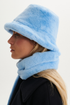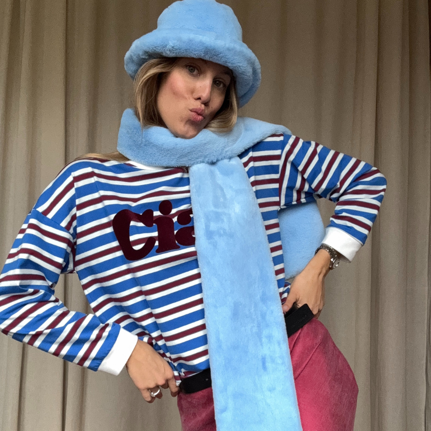 Błękitna wersja Kapleusza Fluffy to spełnienie naszego zimowego snu - miękka, puchata i tak przyjemna w dotyku, że nie będziesz chciała jej zdejmować.  To model inspirowany czapką, którą Karolina pamięta z dzieciństwa — ponadczasowy, ikoniczny i po prostu… uroczy. A do tego wyjątkowo praktyczny: możesz nosić go na trzy sposoby - jak lubisz najbardziej. Kapelusz Fluffy Blue robi całą stylizację — wystarczy czarna kurtka, duży szal Fluffy i stylizacja jest gotowa.