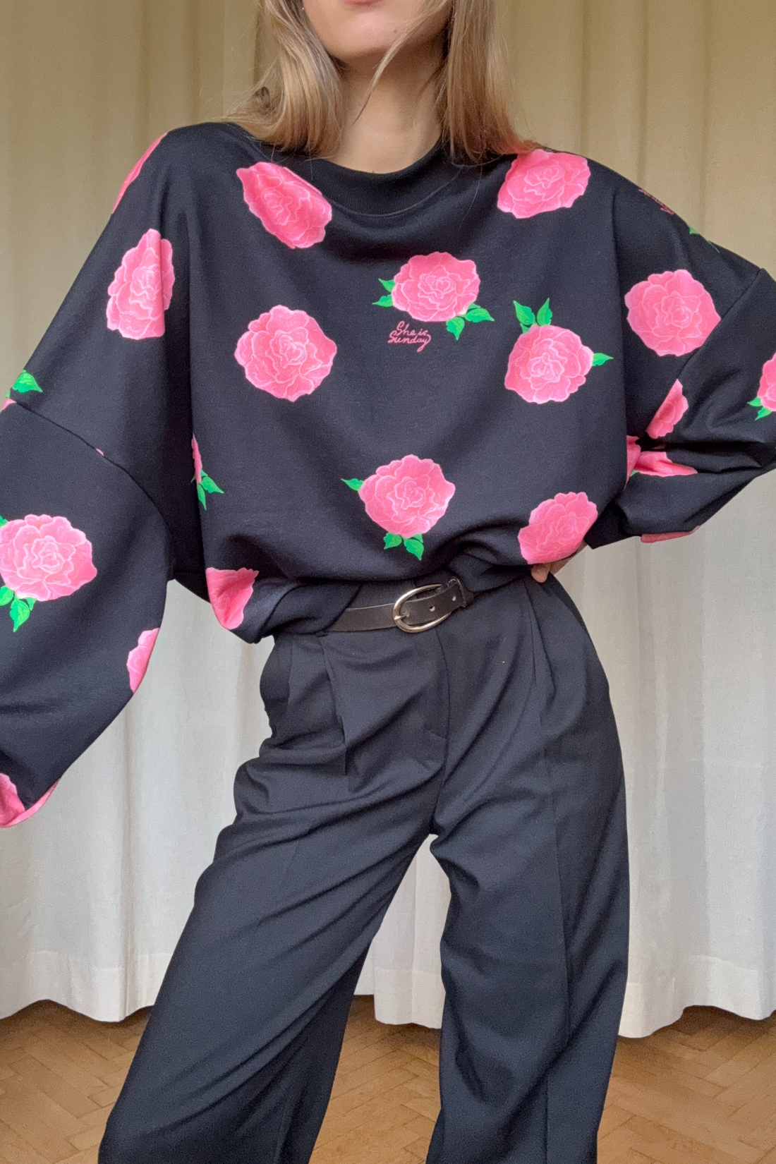 Elegancja w wersji dresowej. Amore Rosa to zupełnie nowy krój bluzy – o szerokim, ozdobnym dekolcie i pudełkowej formie, która pięknie układa się na sylwetce. Wykonana z grubszej dzianiny, sprawdzi się idealnie w chłodniejsze dni – nie tylko na co dzień, ale też wtedy, gdy chcesz wyglądać wyjątkowo bez wysiłku. Autorski print w odcieniach różu na głębokiej czerni sprawia, że bluza wygląda elegancko i uniwersalnie, a przy tym jest wygodna. To ubranie, które łączy komfort z klasą.