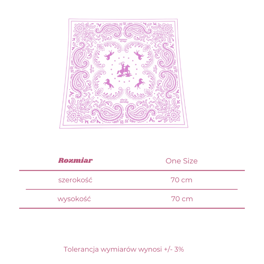 Elegancja spotyka styl Western. Apaszka Sunday West to dopracowany w każdym szczególe dodatek, który łączy tradycję wzorów z autorską grafiką inspirowaną estetyką Dzikiego Zachodu. Kremowy odcień materiału stanowi idealną bazę dla czekoladowych ilustracji.
