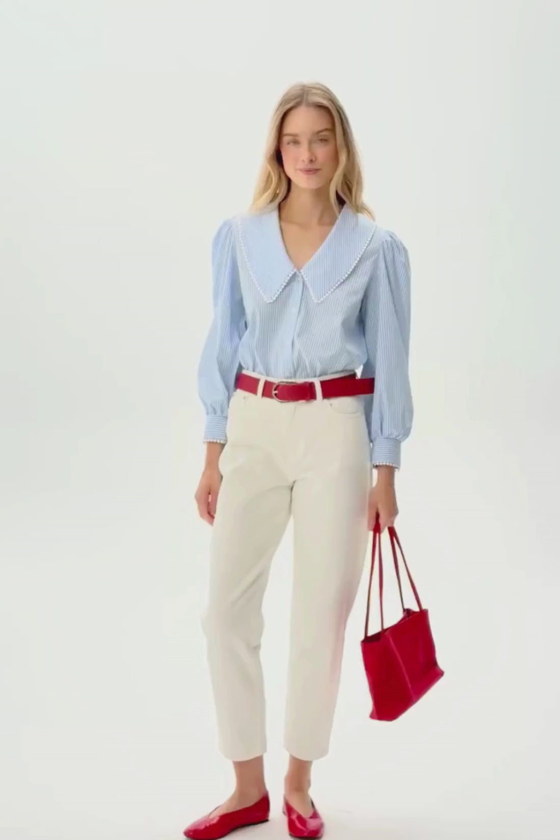- Duży, dziewczęcy kołnierz z ozdobną białą lamówką