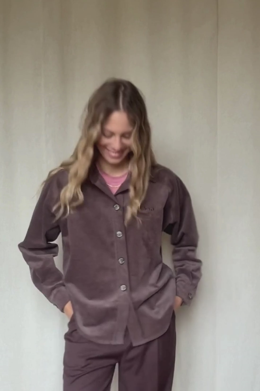 Koszula Nora to według nas klasyka w jesiennym wydaniu. Miękki sztruks w ciepłym odcieniu brązu otula sylwetkę, a haftowane „Ciao” na kieszonce na piersi dodaje całości subtelnego charakteru. To koszula, która może być lekką kurtką, warstwą na T-shirt czy głównym elementem stylizacji – zawsze wygląda stylowo i nonszalancko.