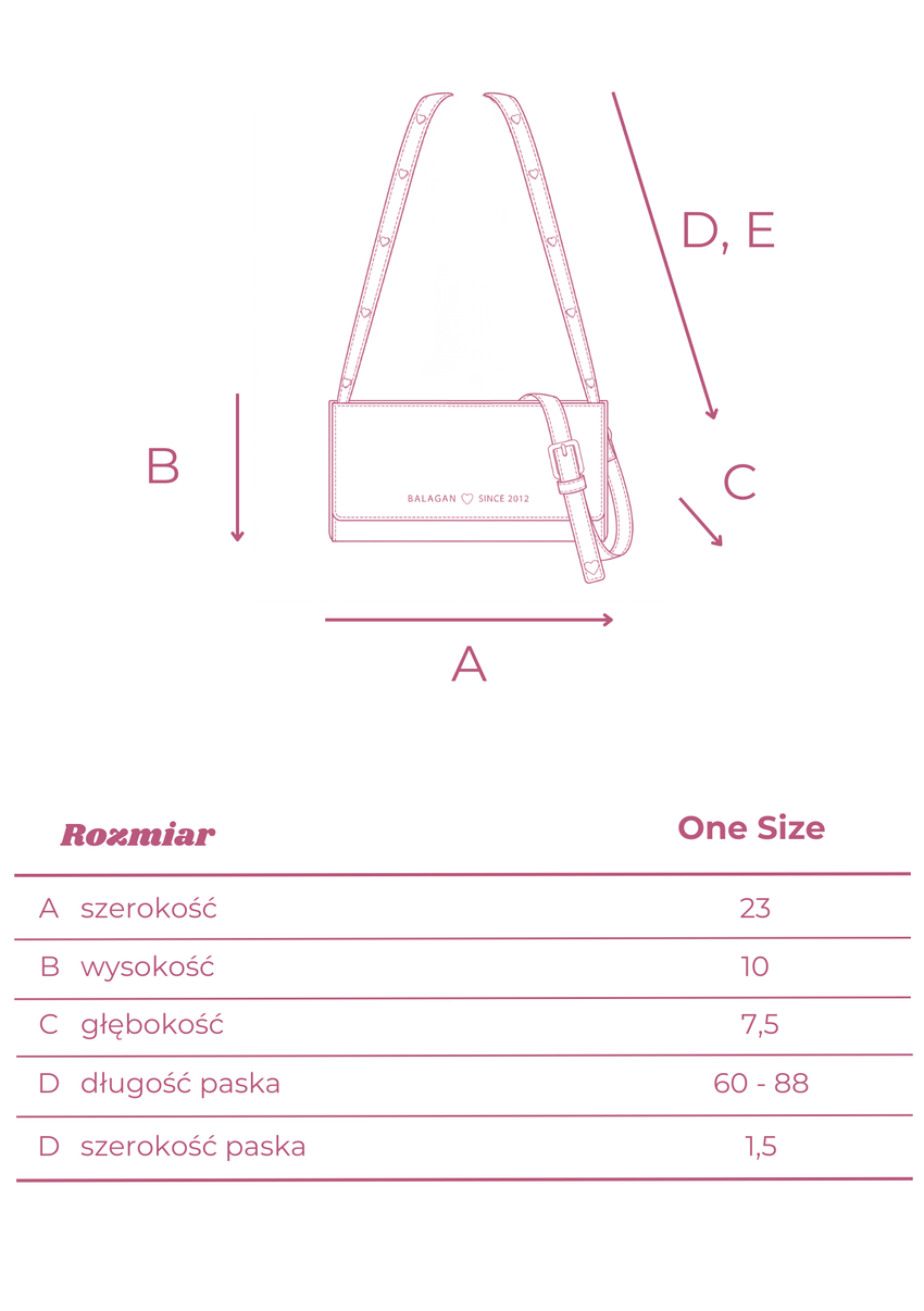 W kolekcji Balagan ♡ She is Sunday nie mogło zabraknąć torebki, która uzupełni wszystkie stylizacje swoim mocnym i modnym, intensywnym kolorem. Minnie to mniejsza wersja kultowej torebki Monique o wyrazistym, geometrycznym kształcie. To edycja limitowana: z wybitnym wspólnym logo i srebrnymi nitami w kształcie serduszek na pasku.