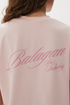 - Ciemno różowe serduszko na przodzie i napis "Balagan She is Sunday" na plecach wykonane metodą sitodruku