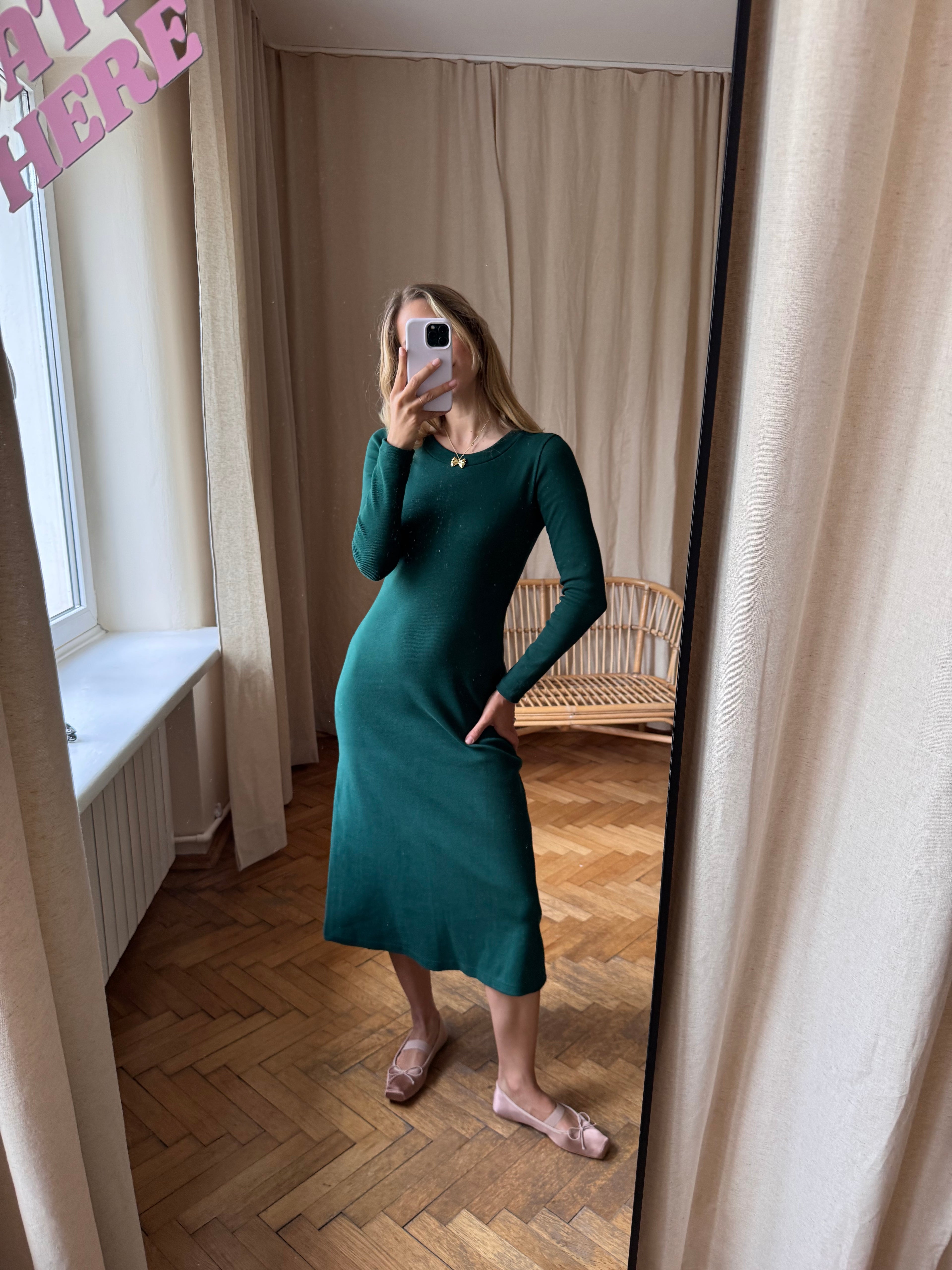 Klasyczna jak cisza o poranku, prosta jak spacer między drzewami. Sukienka Brooke to ukłon w stronę kobiecej prostoty – tej, która nie potrzebuje ozdobników, by robić wrażenie. Głęboka, leśna zieleń otula sylwetkę jak cień drzew, a miękki materiał subtelnie dopasowuje się do ciała. Długi rękaw i dekolt w kształcie łagodnego łuku dodają jej elegancji, która nie wymaga wysiłku. Noś ją boso w domu, z botkami na spacer lub z ulubionym swetrem wieczorem na tarasie. To sukienka, która zostaje z Tobą – bez względu na porę roku czy okazję.