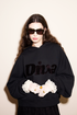 Czarna bluza o oversize’owym fasonie z kolekcji Halloween. Wykonana z miękkiej dresówki drapanej, przyjemnej w dotyku i zapewniającej ciepło w chłodniejsze dni. Nadruk „Diva” z brokatowym połyskiem dodaje całości charakteru, a luźny krój z obniżoną linią ramion gwarantuje wygodę noszenia. To uniwersalny model, który łączy sportowy luz z eleganckim wykończeniem. Idealna do jeansów, legginsów lub spódnicy.