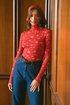 Golf Mira Rossa to kobiecy manifest stylu i zmysłowości. Pokryty nadrukiem róż na intensywnie czerwonym tle, przyciąga spojrzenia i dodaje pewności siebie. Ma długi rękaw, lekko przylegający fason i miękki, elastyczny materiał, który pięknie układa się na sylwetce. Print jest uniwersalny i ponadczasowy – sprawdzi się dziś, jutro i za kilka sezonów. To jedna z tych rzeczy, które robią całą stylizację – wystarczy dodać ulubione jeansy i jesteś gotowa.