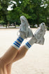 Skarpetki z pozytywnym przekazem – „Tutto Bene” to nie tylko napis, to styl życia! Biała baza, kobaltowe akcenty i retro paski tworzą idealny miks wygody i charakteru. Świetne do sneakersów, miejskich stylówek albo jako włoski akcent w domowym chilloutcie.