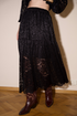 Spódnica Selva w czerni to mroczna elegancja w lekkiej formie. Została wykonana z delikatnej koronki, lekko prześwituje w świetle – a dzięki krótszej podszewce subtelnie eksponuje nogi, dodając stylizacji lekkości i zmysłowości. Jej wydłużony krój świetnie współgra zarówno z botkami, trampkami jak i kozakami, dodając lekkości każdemu krokowi. Idealna na wieczorne wyjścia, jesienne spacery i dni, kiedy każdy ruch będzie wyglądał jak scena z filmu