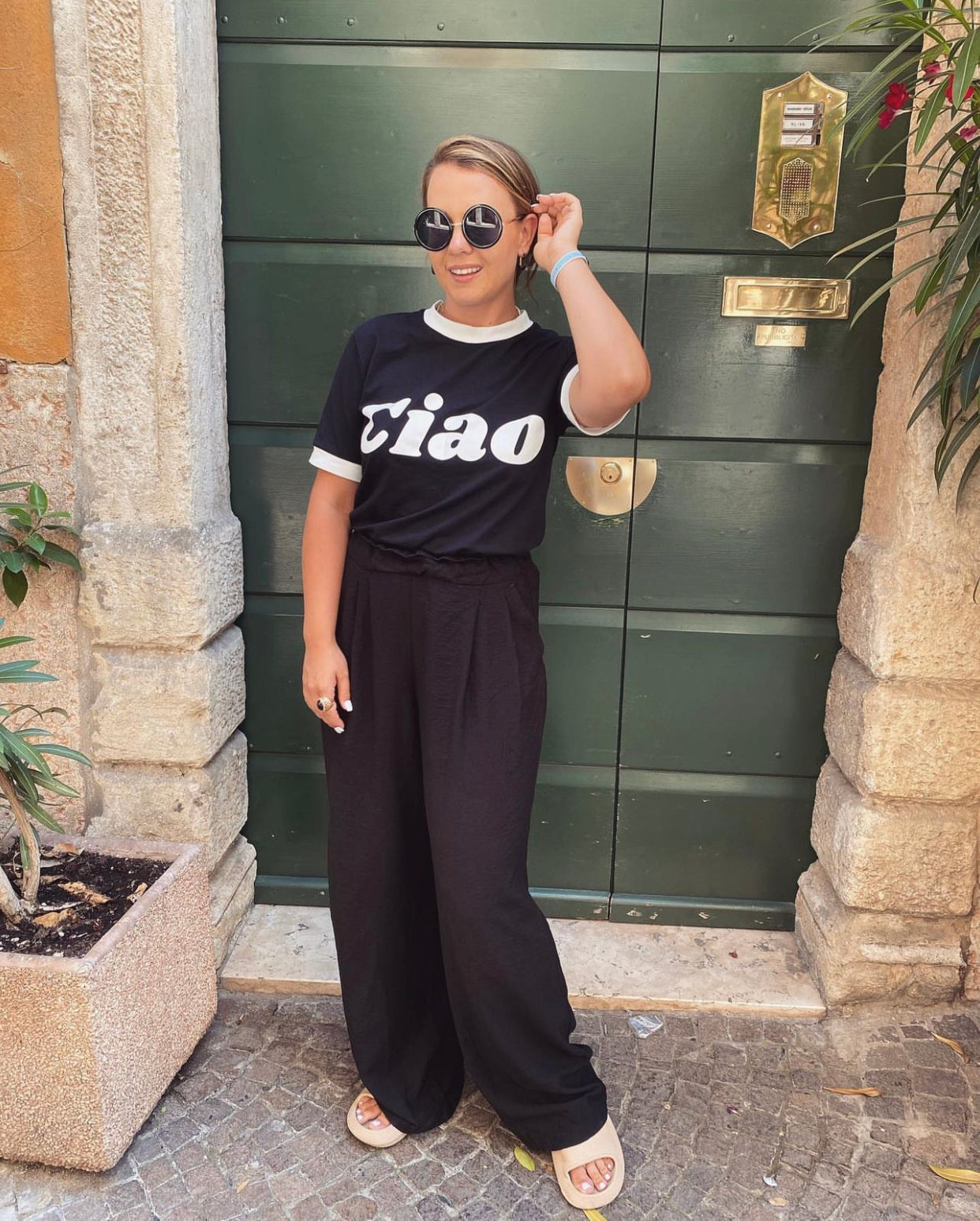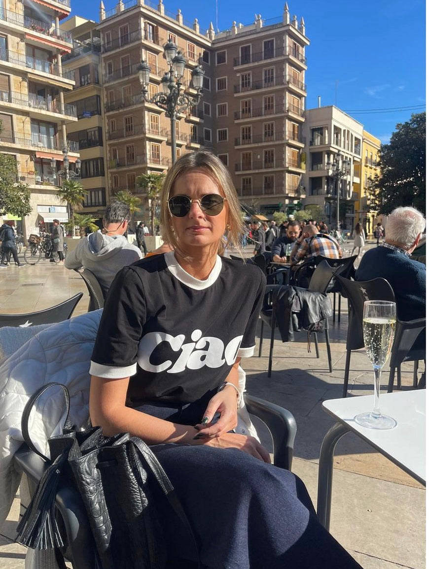 Odsłona best-sellerowego t-shirtu 'CIAO' w kontrastowym połączeniu czerni z mleczno-białymi ściągaczami oraz nadrukiem. CIAO to symbol radości, wspólnoty i włoskiego lifestyle’u, z którym się utożsamiamy i chcemy dzielić z innymi.