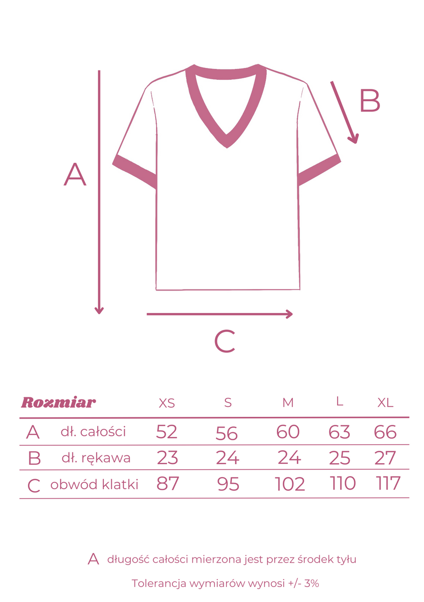 Czerwono-różowy T-shirt z dekoltem w serek (v-neck) to nasza bestsellerowa propozycja, która łączy w sobie elegancję z odrobiną luzu. Na przodzie koszulki widnieje wyrazisty, czerwony napis „Ciao”, który nadaje całości nowoczesnego i swobodnego charakteru. Wykonany z miękkiej, komfortowej dzianiny, ten T-shirt zapewnia wygodę noszenia przez cały dzień. Nasz ulubiony, czerwono-różowy kolor dodaje mu energii i wyróżnia go spośród innych modeli. Idealny do codziennych, casualowych stylizacji, ale równie świetny w bardziej eleganckich zestawieniach.